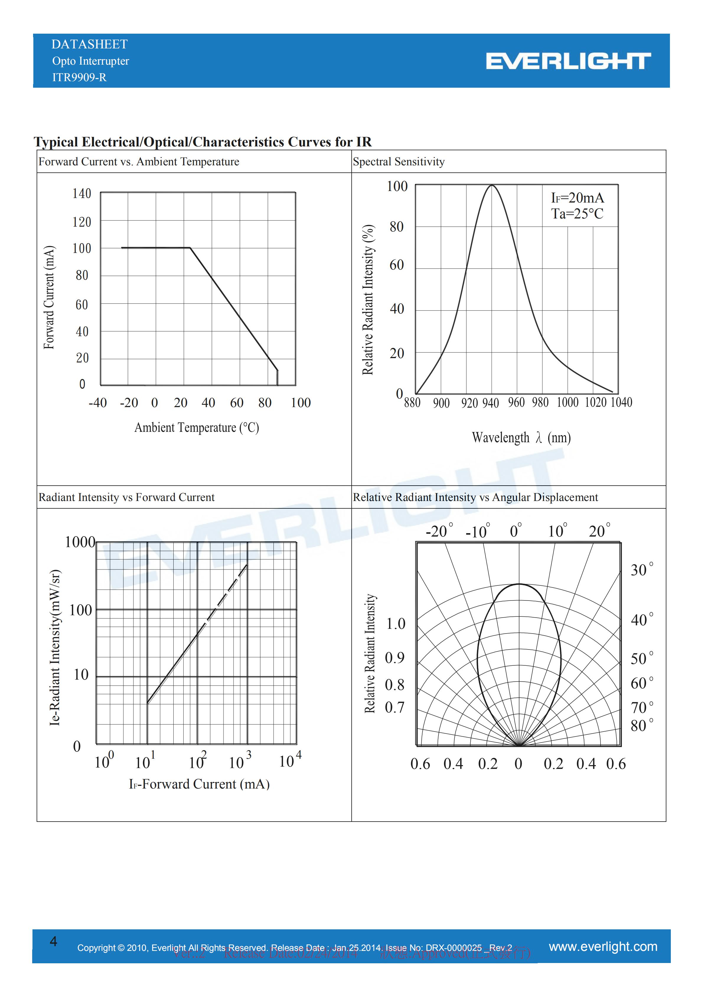 亿光反射式光电开关ITR9909-R开关传感器参数及规格书(PDF 数据表)