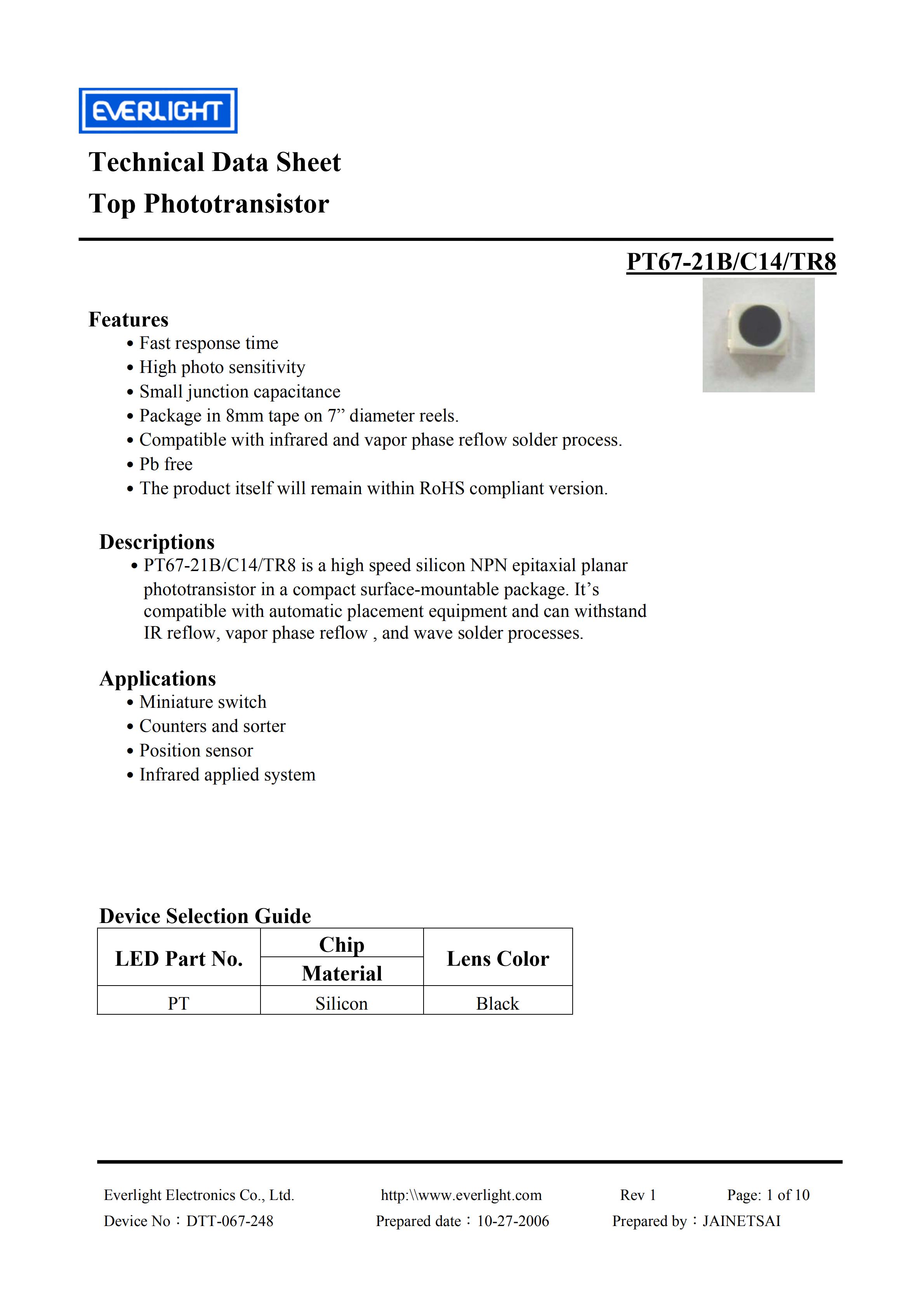 亿光贴片3528红外接收管PT67-21B/C14/TR8规格书PDF(数据表)