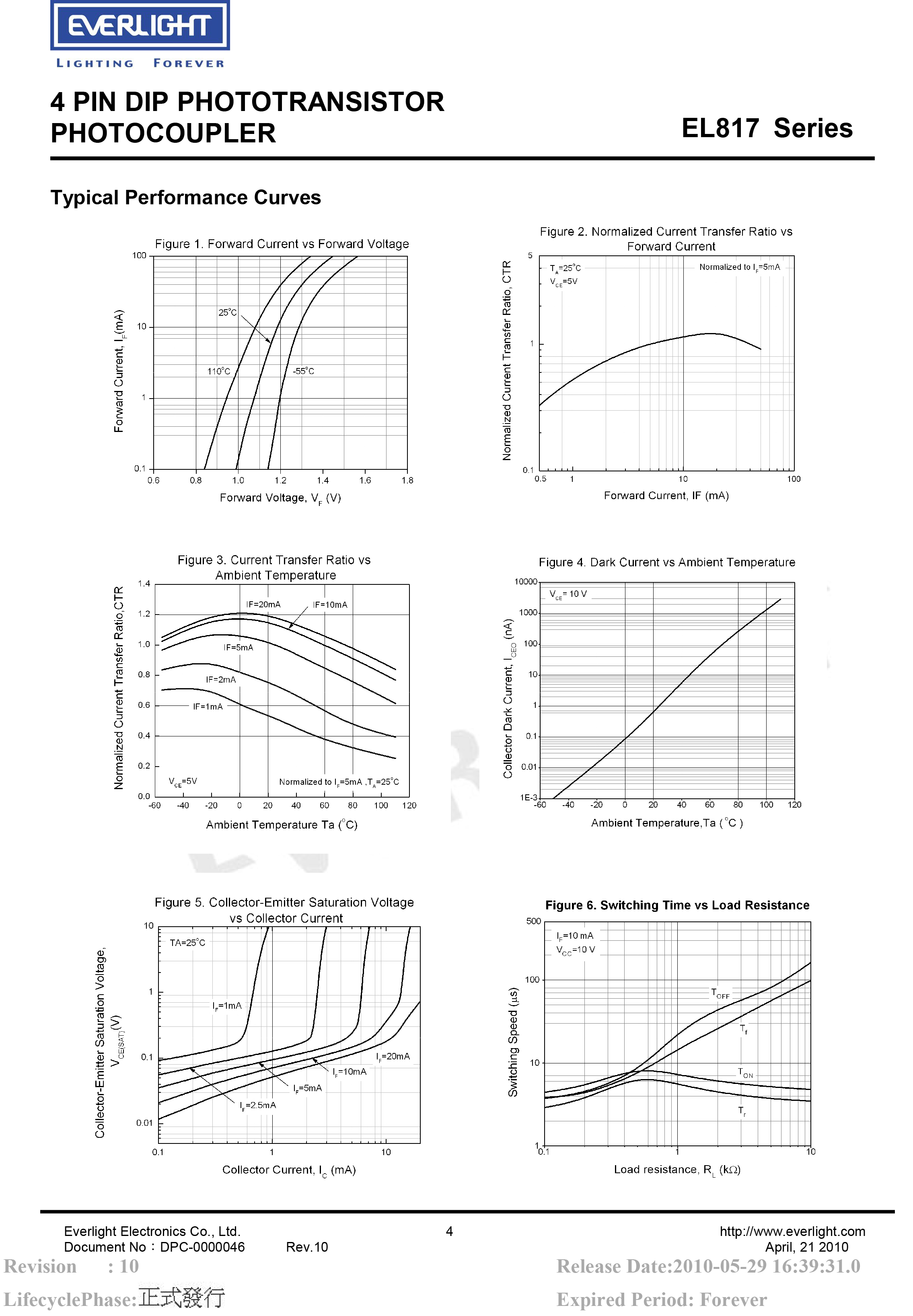 亿光直插光耦EL817 DIP-4光电耦合器规格书PDF(数据表)