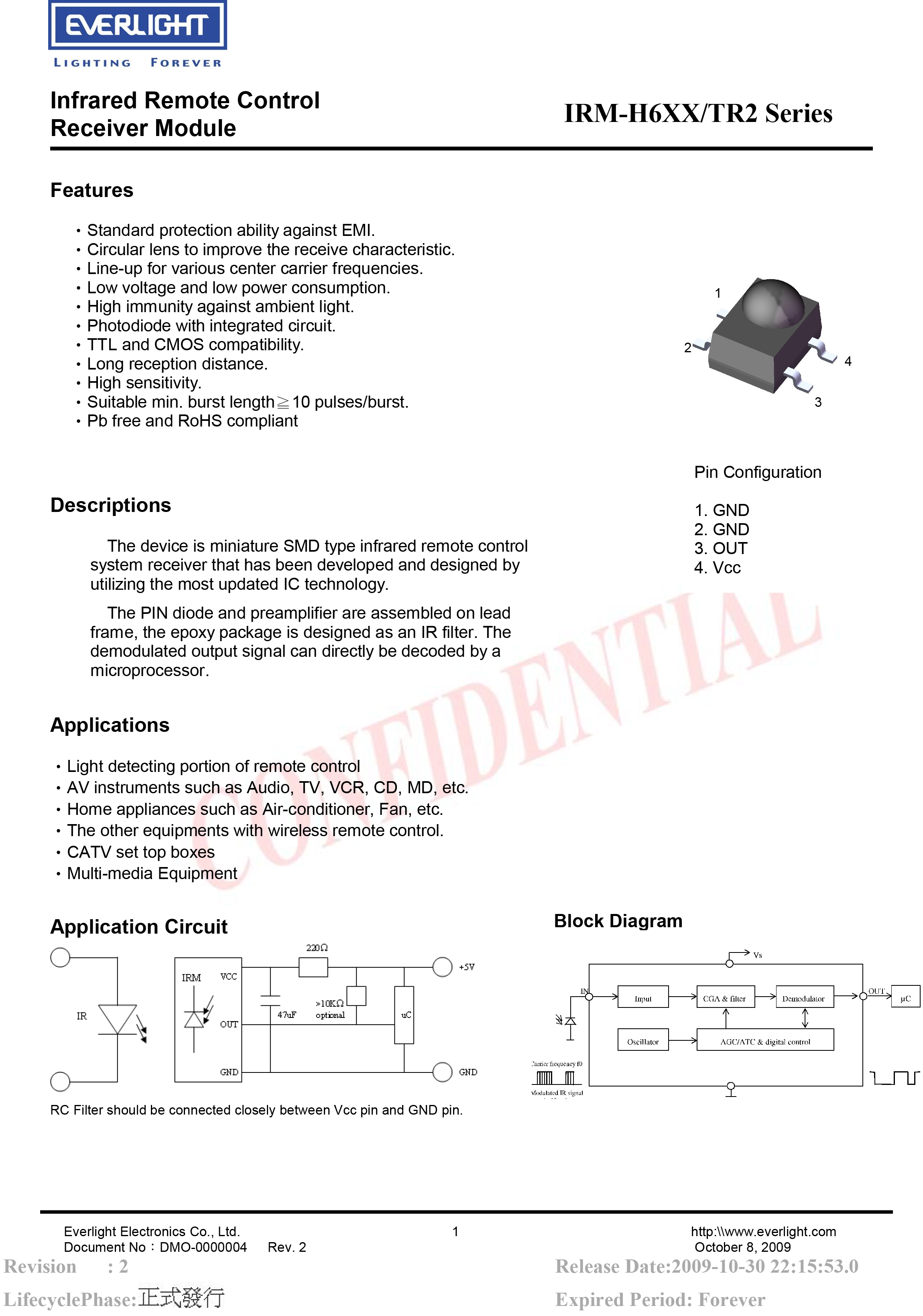 亿光贴片红外接收头IRM-H636/TR2规格书PDF(数据表)