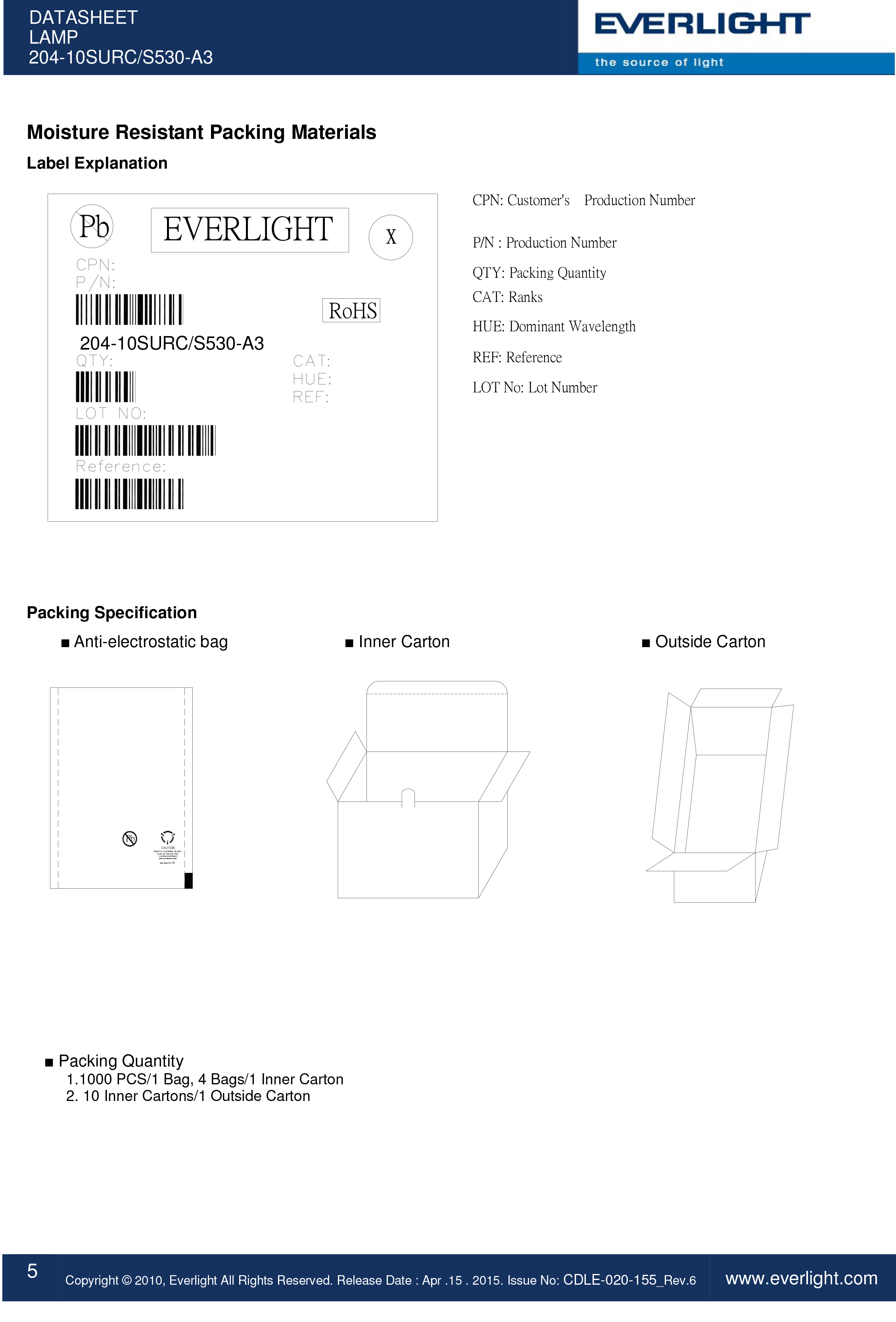 亿光直插3mm发光二级管204-10SURC/S530-A3规格书PDF(数据表)